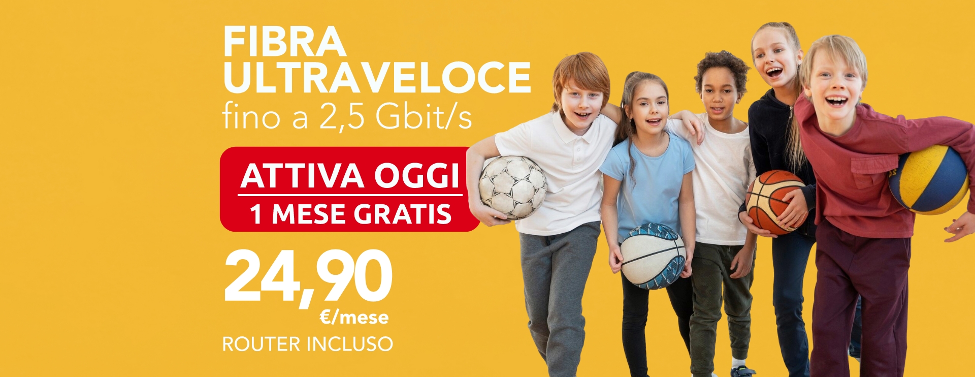 Naviga in tutta la casa con la Fibra Ultraveloce a 2,5 Gbit/s a soli 24,90€/al mese PER SEMPRE con router incluso.